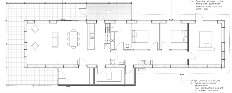 They modelled the building without non-thermal spaces (a mudroom and larder outside the envelope) to get an accurate performance picture—resulting in a predicted 9.8-star performance (with airtightness considered). The compliance version: 8.4 stars.